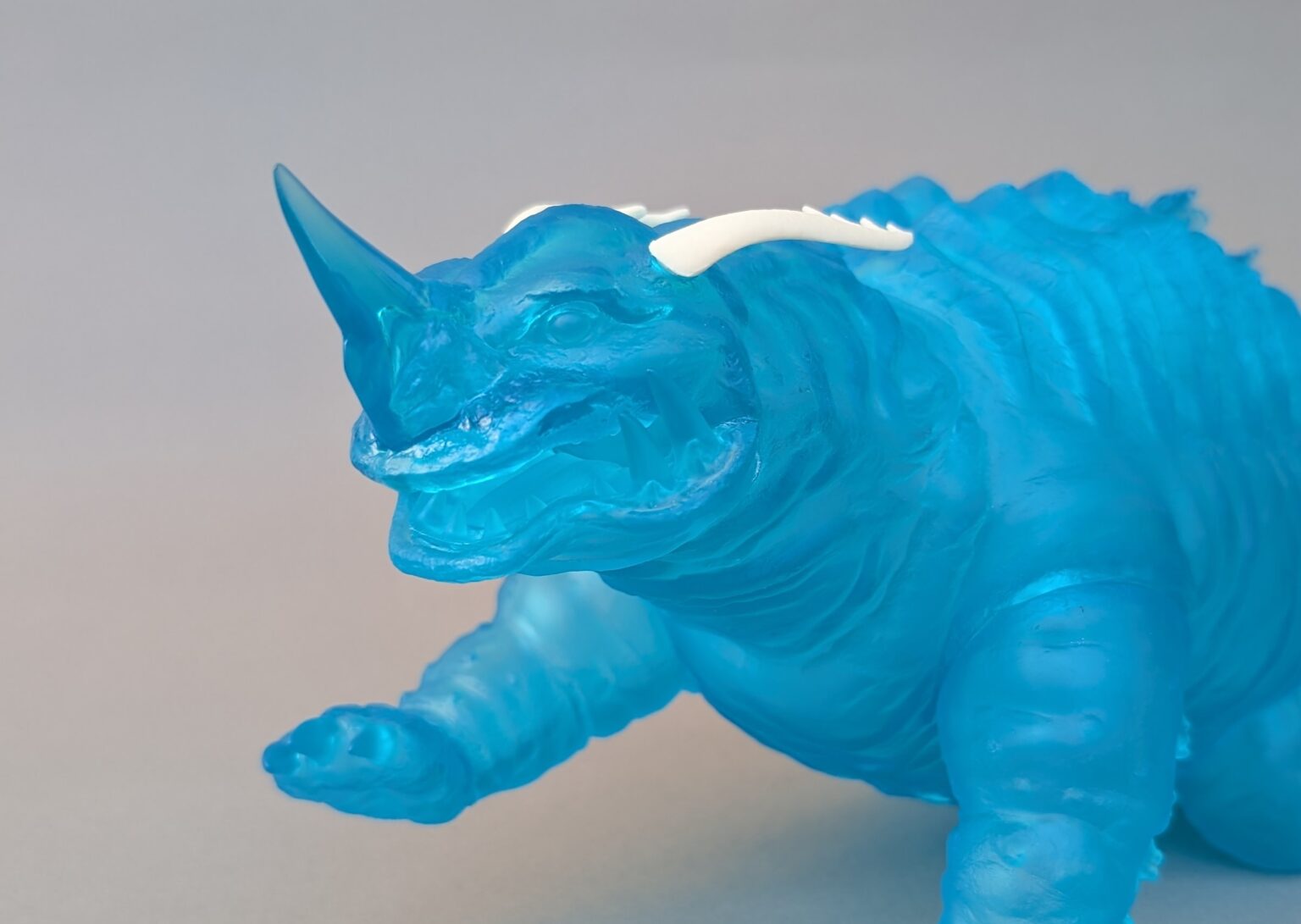 透明怪獣ネロンガが光を通し美しい影も生まれる青透明色にて登場。